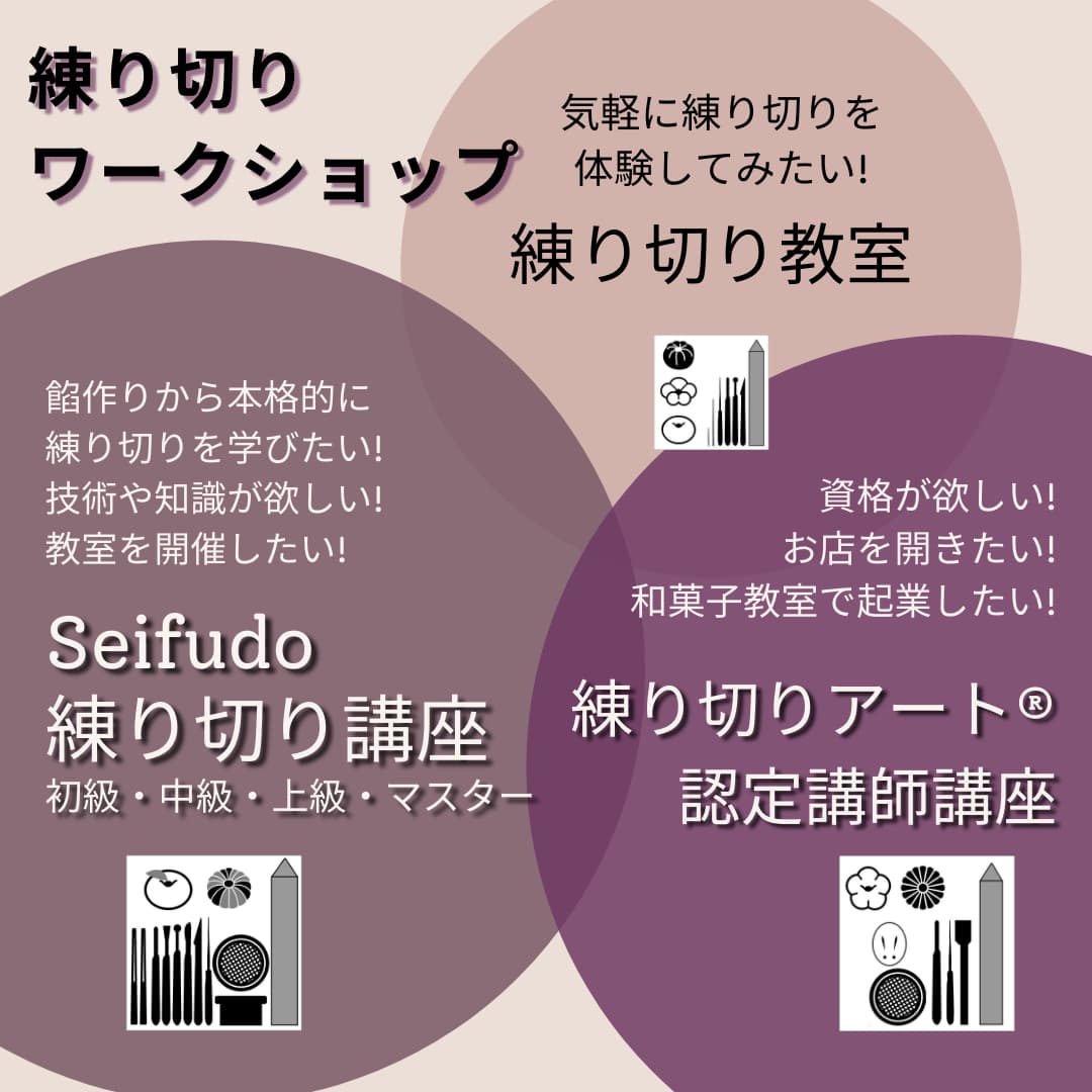 山口県山口市で毎月・定期的な練り切りワークショップの開催、Seifudo 練り切り講座、練り切りアート認定講師講座など初心者から上級者までお楽しみいただける練り切りワークショップを開催しています。出張練り切り教室も随時受け付けております。
